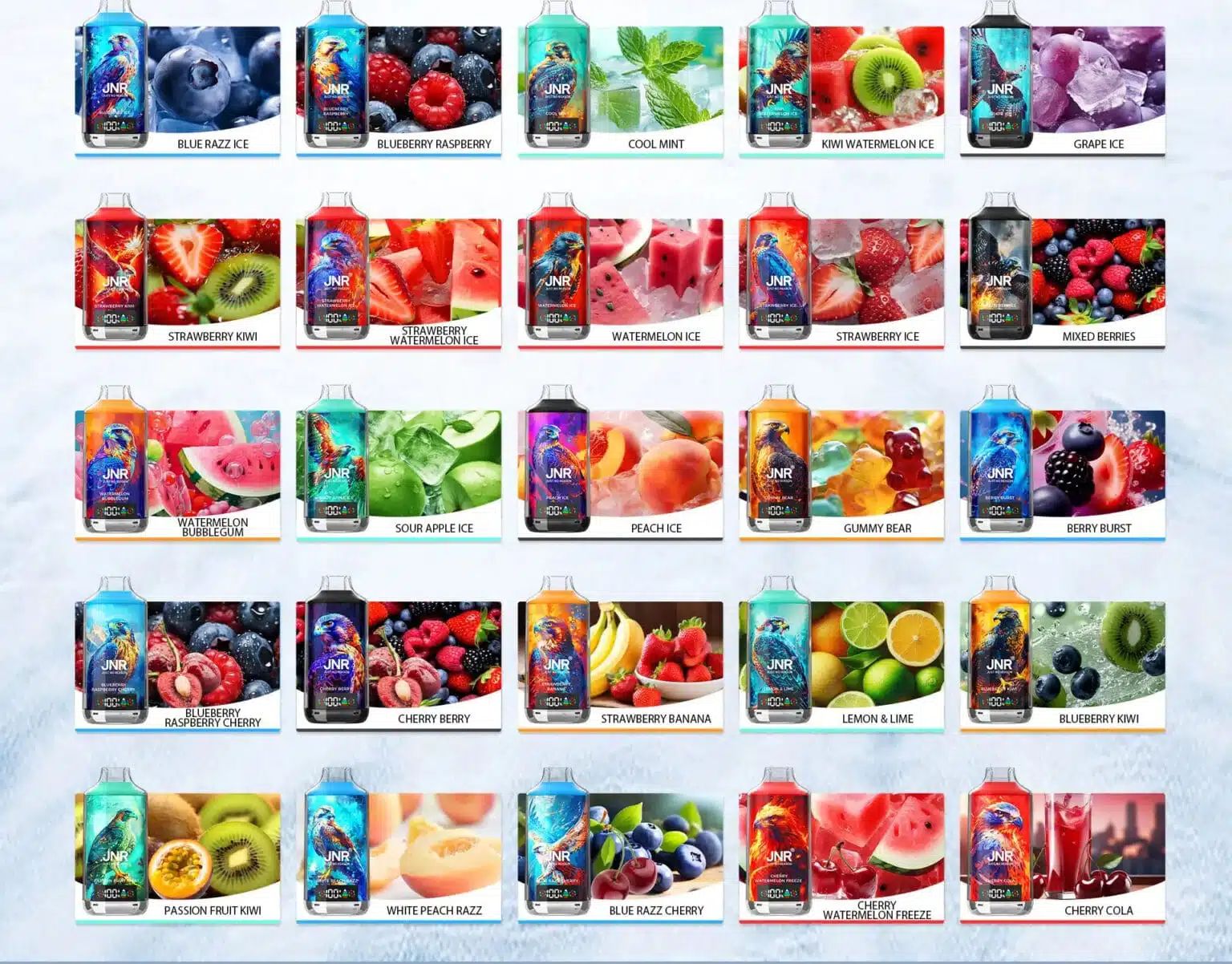 With 12 amazing flavors, the JNR Falcon X provides a flavor experience for everyone. Whether you're into fruity, icy, or minty flavors, you’ll find your perfect match.
